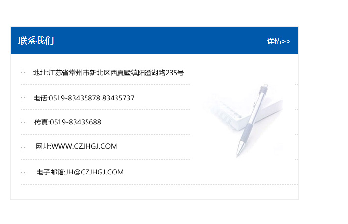 地址:常州市新北區友邦商務大廈1幢16、17層  電話:0519-85101652  傳真:0519-85112595  郵編:213022  網址:www_cz-jiayue_cn.yzjinze.com  郵箱:xiajifengaa@163.com